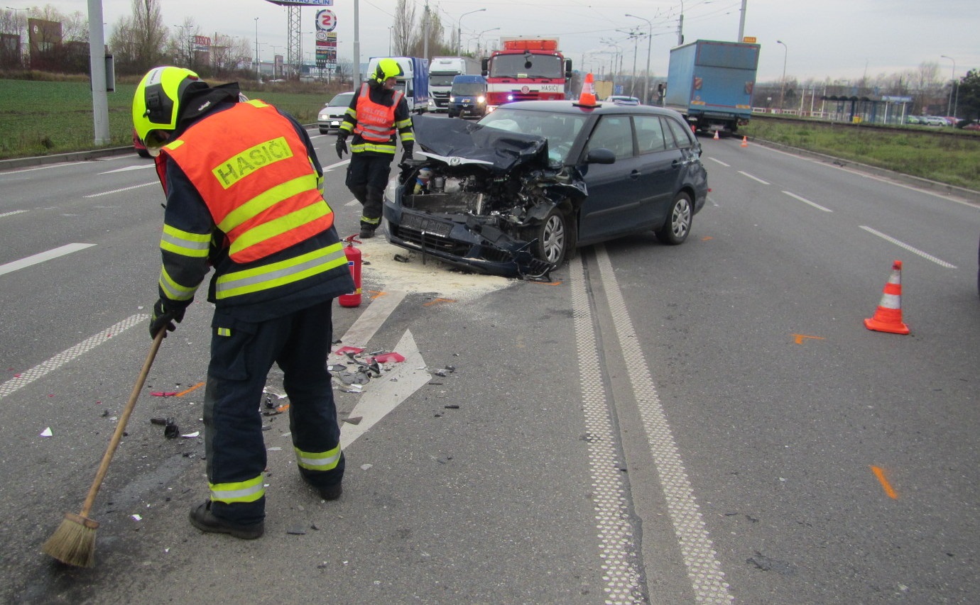 Nehoda tří vozidel komplikovala ráno dopravu na hlavním tahu mezi Zlínem a Otrokovicemi
