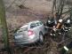 Vůz skončil po nehodě zaklíněn mezi stromy