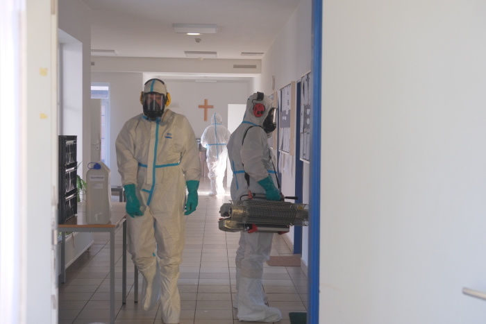 Ostravští hasiči dezinfikovali Azylový dům Armády spásy vuvuzelami