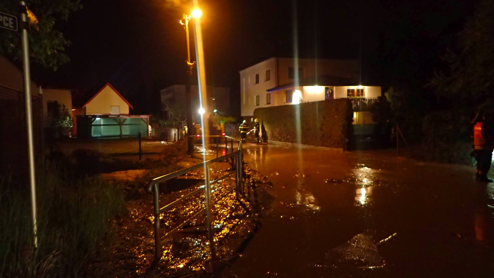 Moravskoslezští hasiči čerpali vodu a odklízeli bahno po večerním lijáku