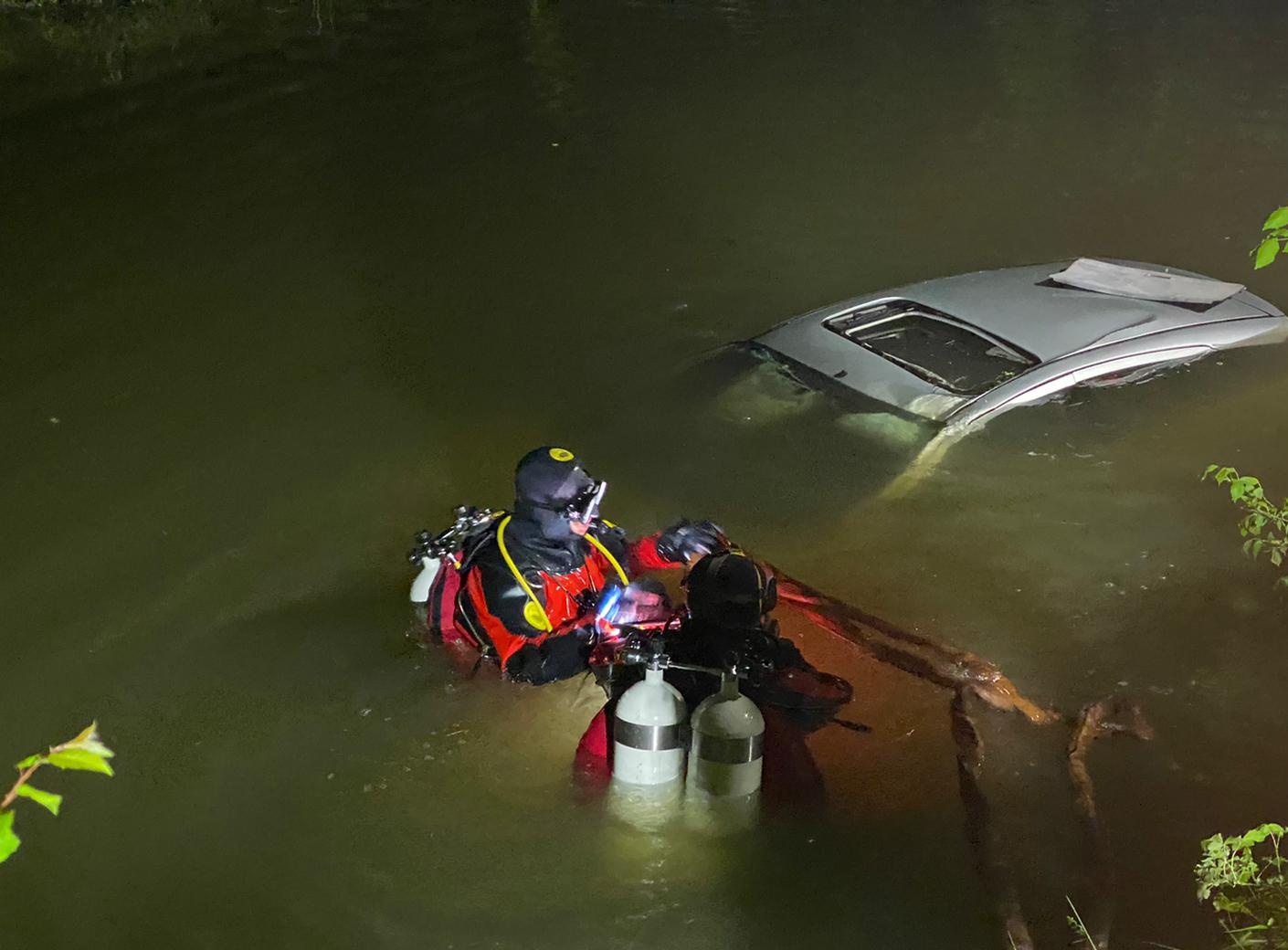 Vyprostili jsme vůz potopený v náhonu. Zasahovali hasiči-potápěči
