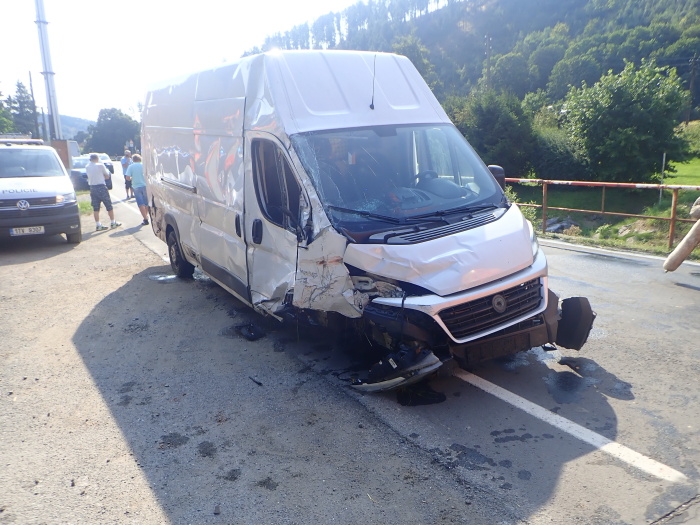 Vyprošťování dodávky z řeky Opavice v Městě Albrechticích jeřábem