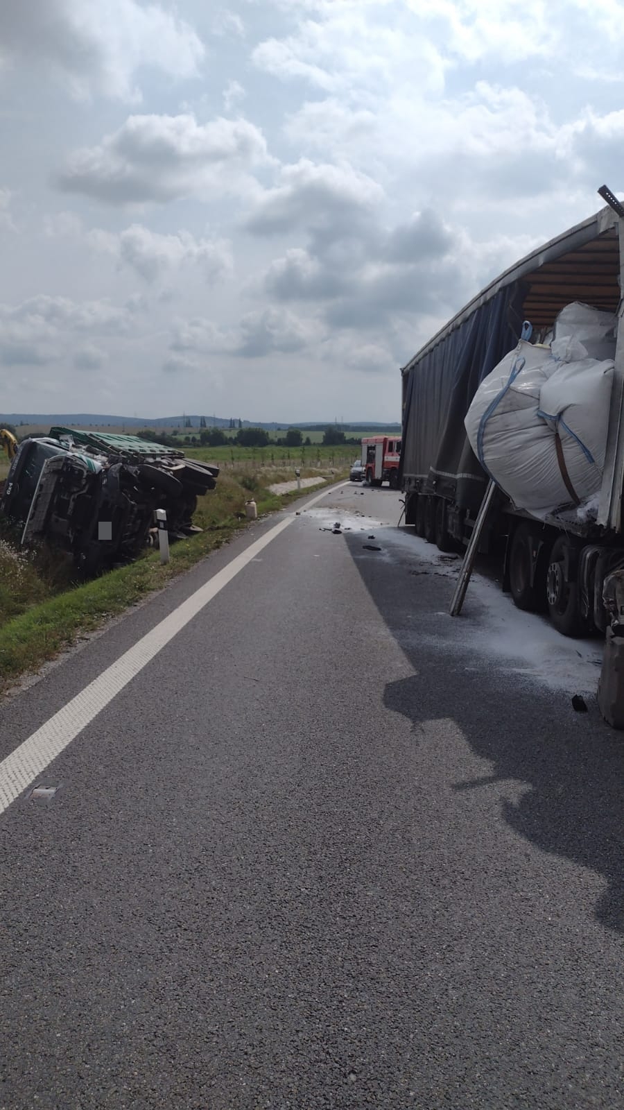 Náklaďák skončil v Tlumačově na boku v příkopě