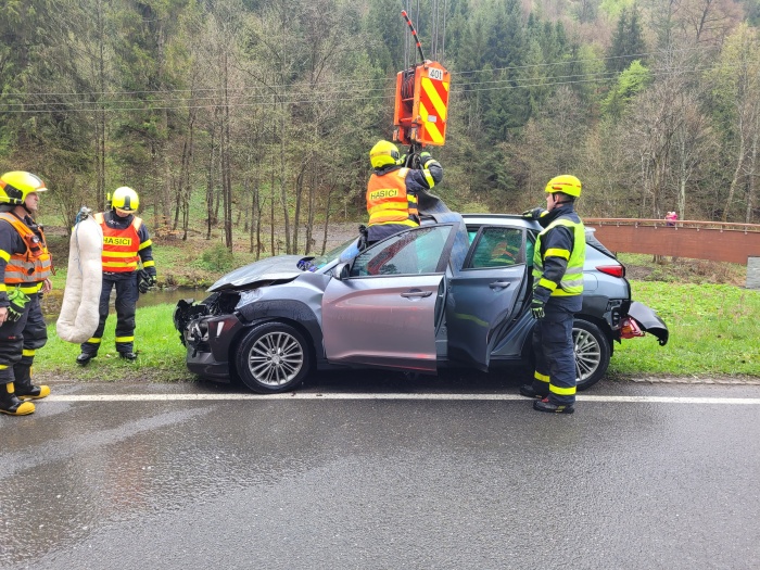 Hasiči lovili osobní automobil z beskydské řeky Lomné