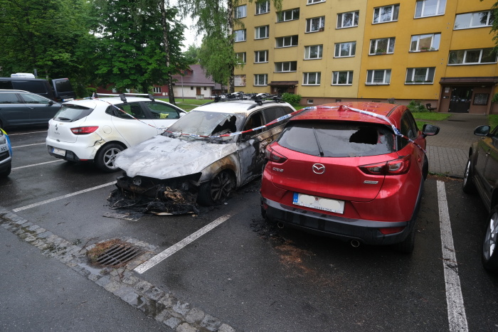 Noční požár v Karviné poškodil tři osobní auta, škoda 800 tisíc