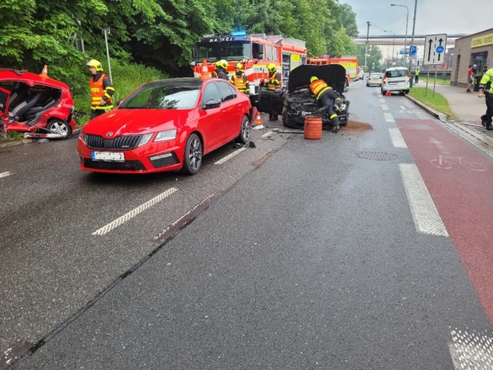 Třinečtí hasiči zasahovali u nehody čtyř aut, vyprostili řidičku toyoty
