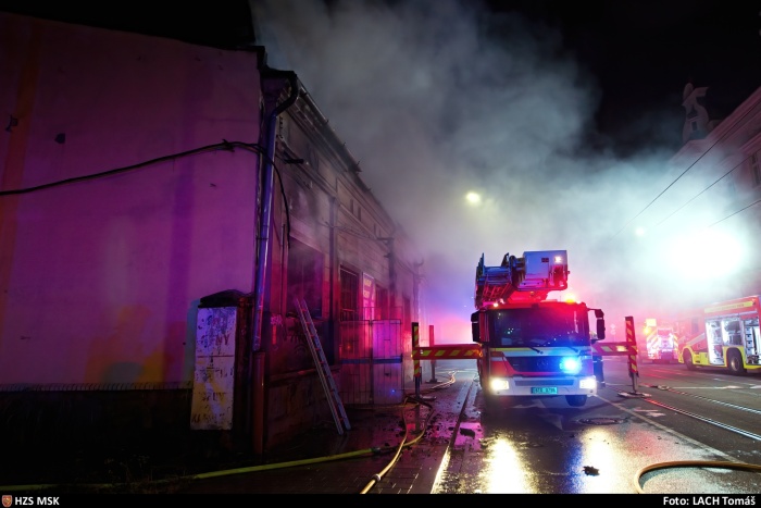 Požár bývalé prodejny v centru Ostravy se záchranou osoby, nejely tramvaje