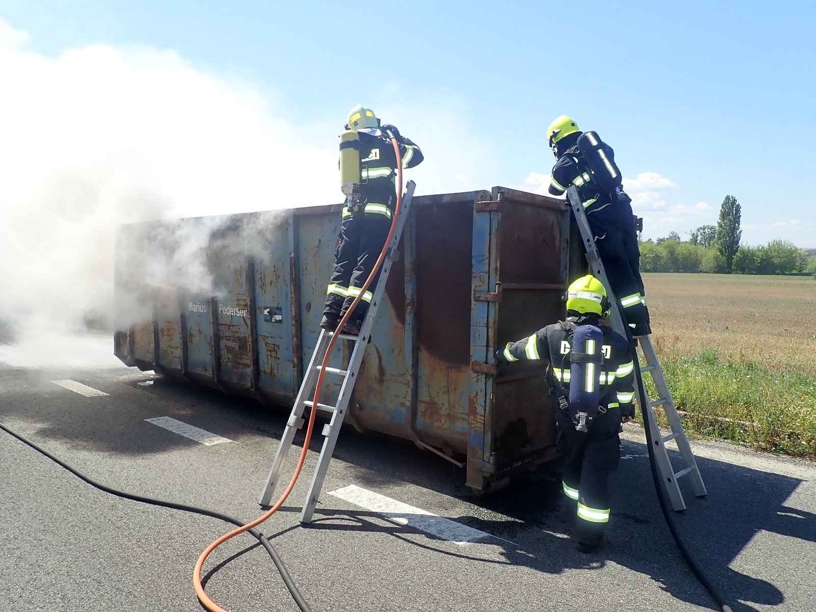 Požár kontejneru s odpadem nedaleko benzinové stanice.