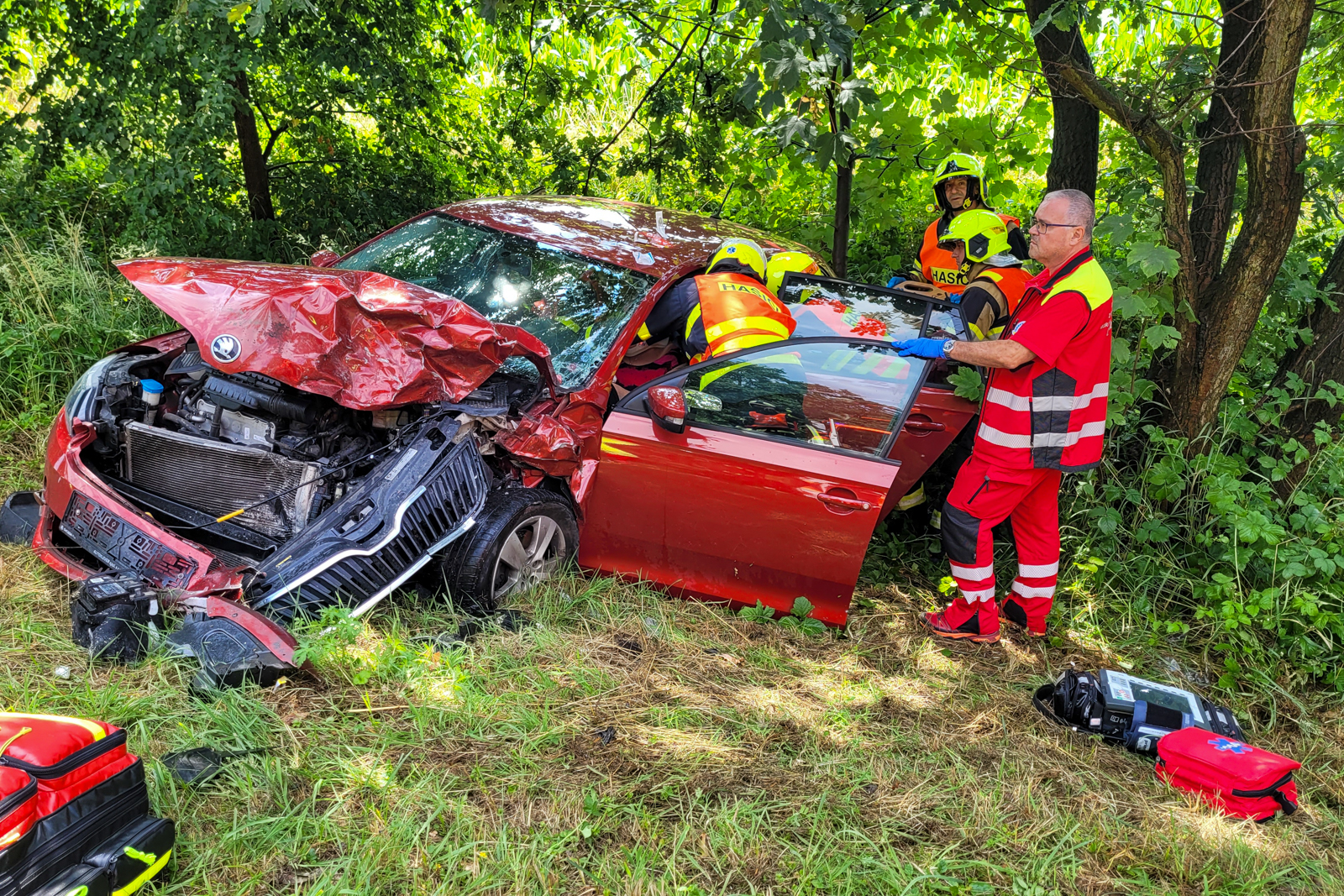 Dva lidé byli zraněni při dopravní nehodě v Mošnově, jednoho z nich museli hasiči vyprostit