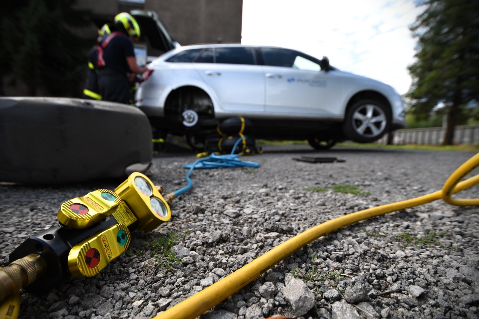 Hasiči zachraňovali čápa z útrob komína a užovku ukrytou v podvozku osobního automobilu