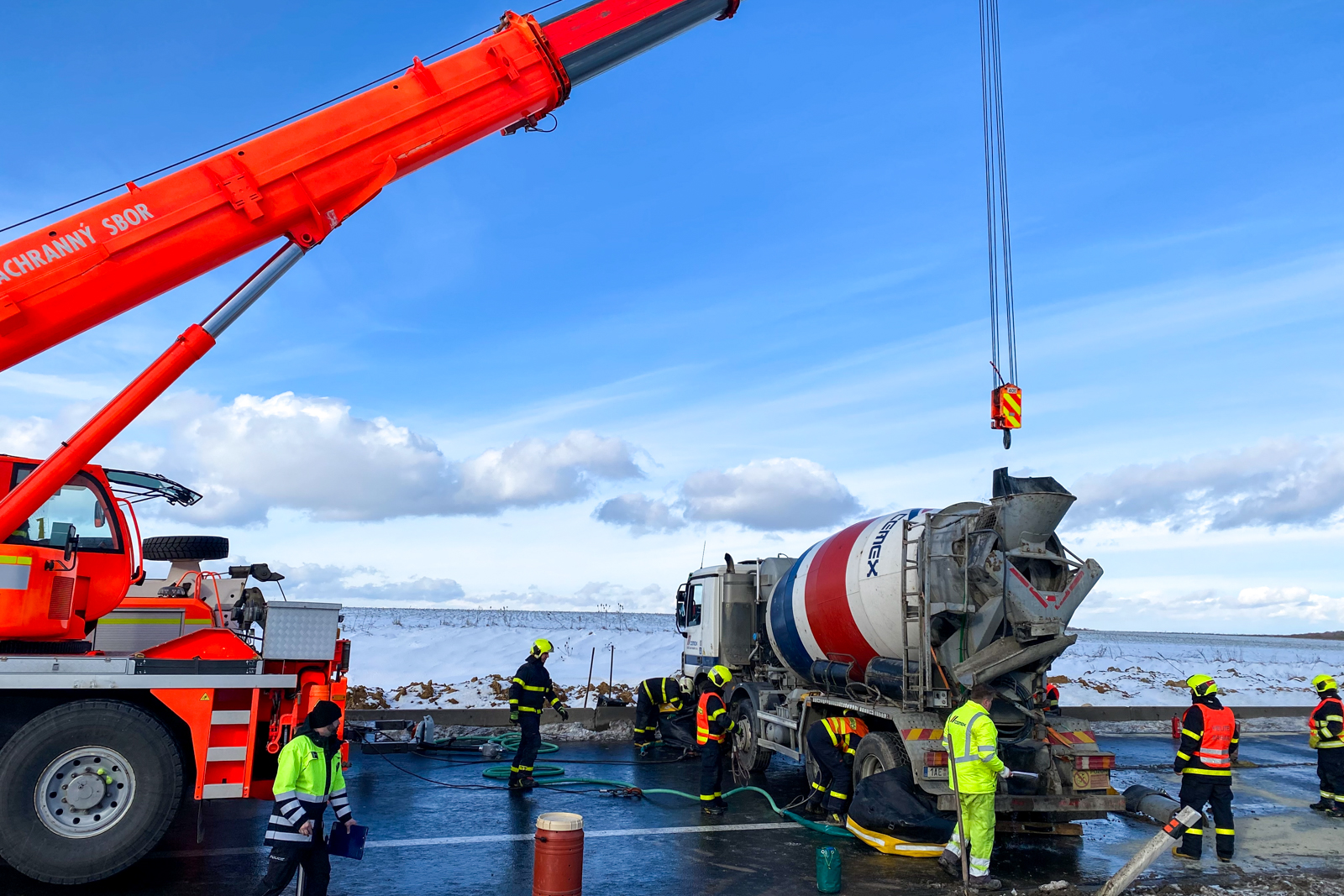 Nehoda domíchávače na několik hodin uzavřela provoz na připravované dálnici D48 ve směru z Bělotína do Nového Jičína