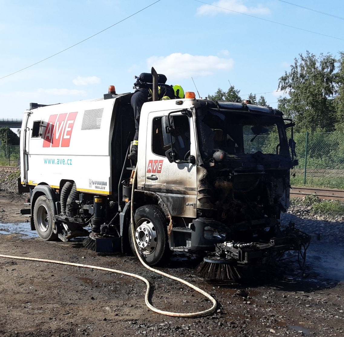 Požár zametacího vozu v obci Herlify Požár zametacího vozu v obci Herlify Požár zametacího vozu v obci Herlify