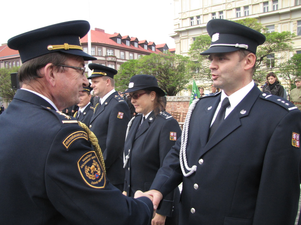 Královéhradečtí hasiči převzali na Masarykově náměstí věrnostní medaile