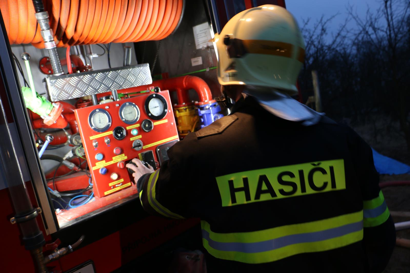 Likvidace požáru chatky v Dolanech – škody ve statisících.