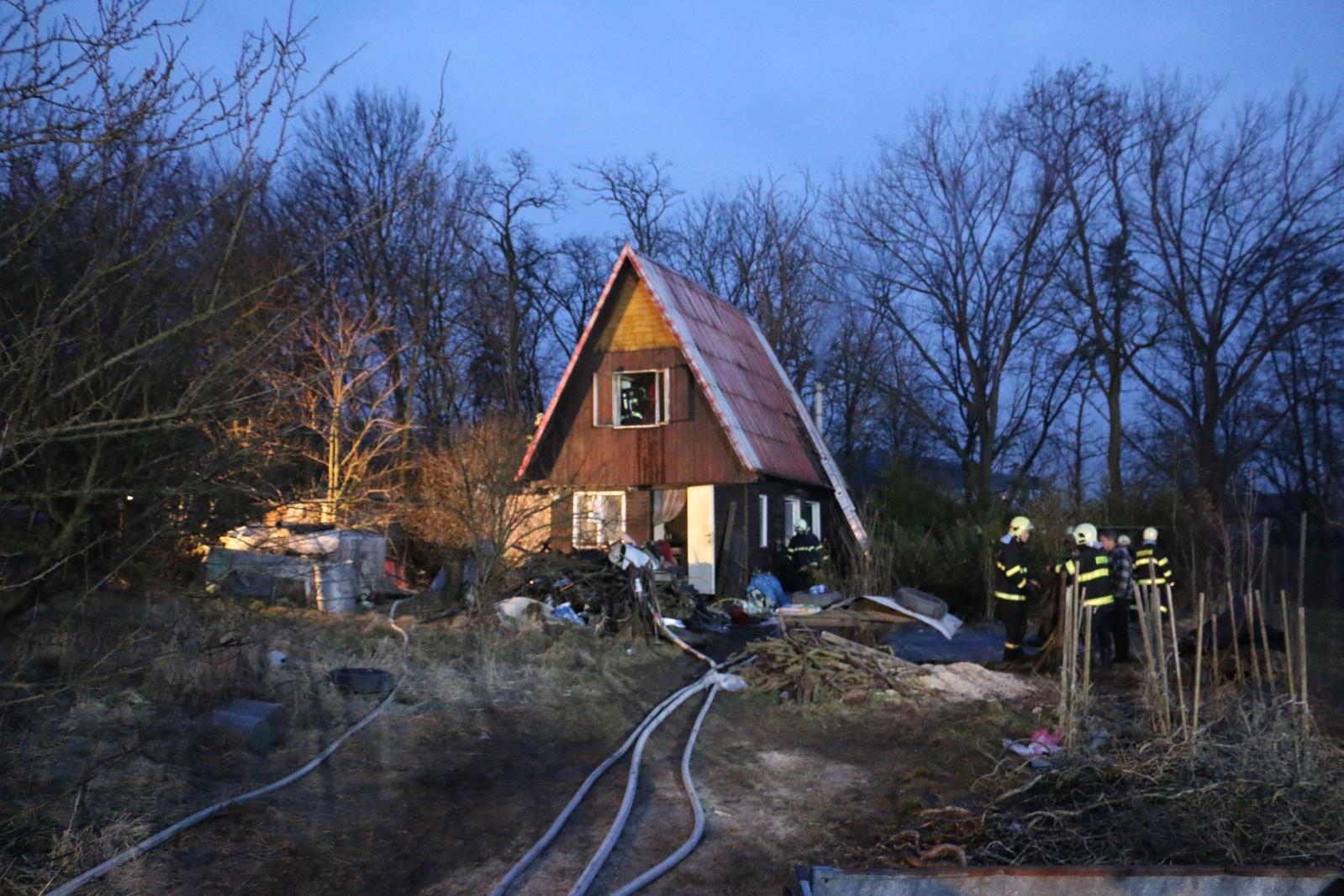 Likvidace požáru chatky v Dolanech – škody ve statisících.