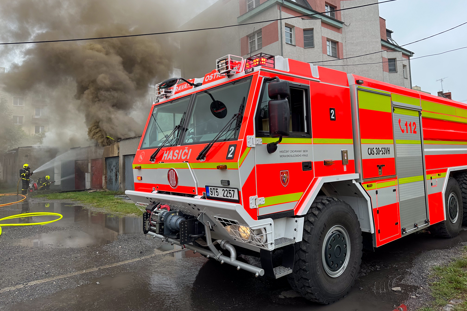 Čtyři jednotky hasičů zasahovaly při požáru garáží v Ostravě, předběžná škoda byla vyčíslena na jeden milion korun