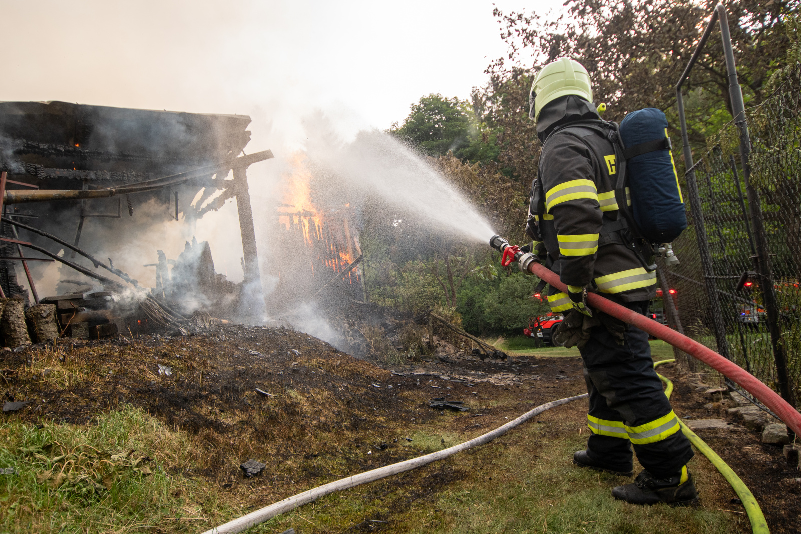 Na likvidaci rozsáhlého požáru stodoly a roubenky v Lubně se podílelo osm jednotek hasičů