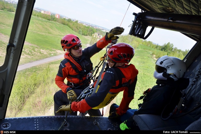 Letečtí záchranáři HZS MSK zachraňovali osoby vrtulníkovým jeřábem