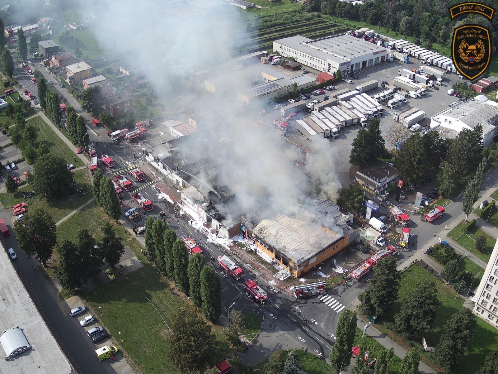 Rozsáhlý požár v Otrokovicích zaměstnal desítky jednotek hasičů (aktualizace)