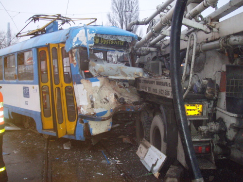 Srážka ostravské tramvaje s domíchávačem si vyžádala nejméně 6 zraněných