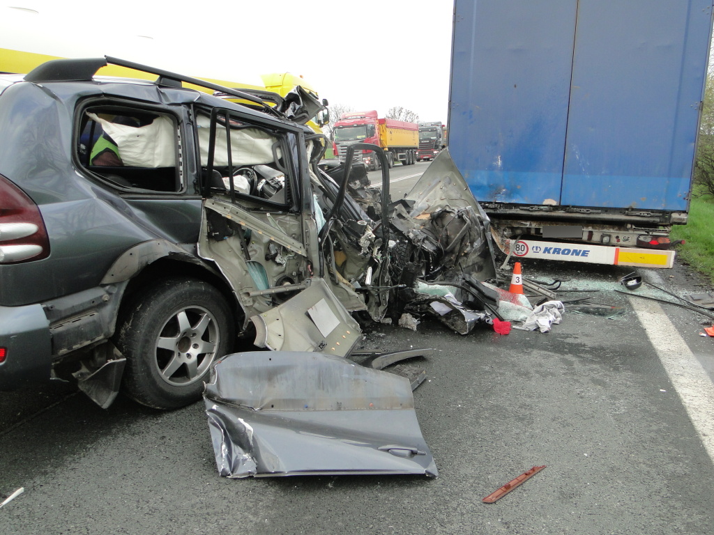 Řidič osobního auta narazil do odstaveného kamionu, hasiči museli vyprostit spolujezdce