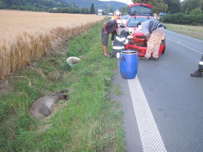 Dva divočáci při přebíhání silnice poškodili osobní auto