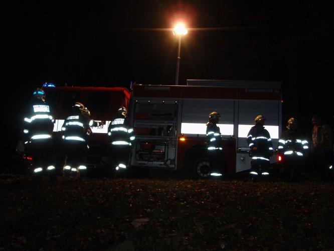 Hasiči použili osvětlovací stožár jako maják.