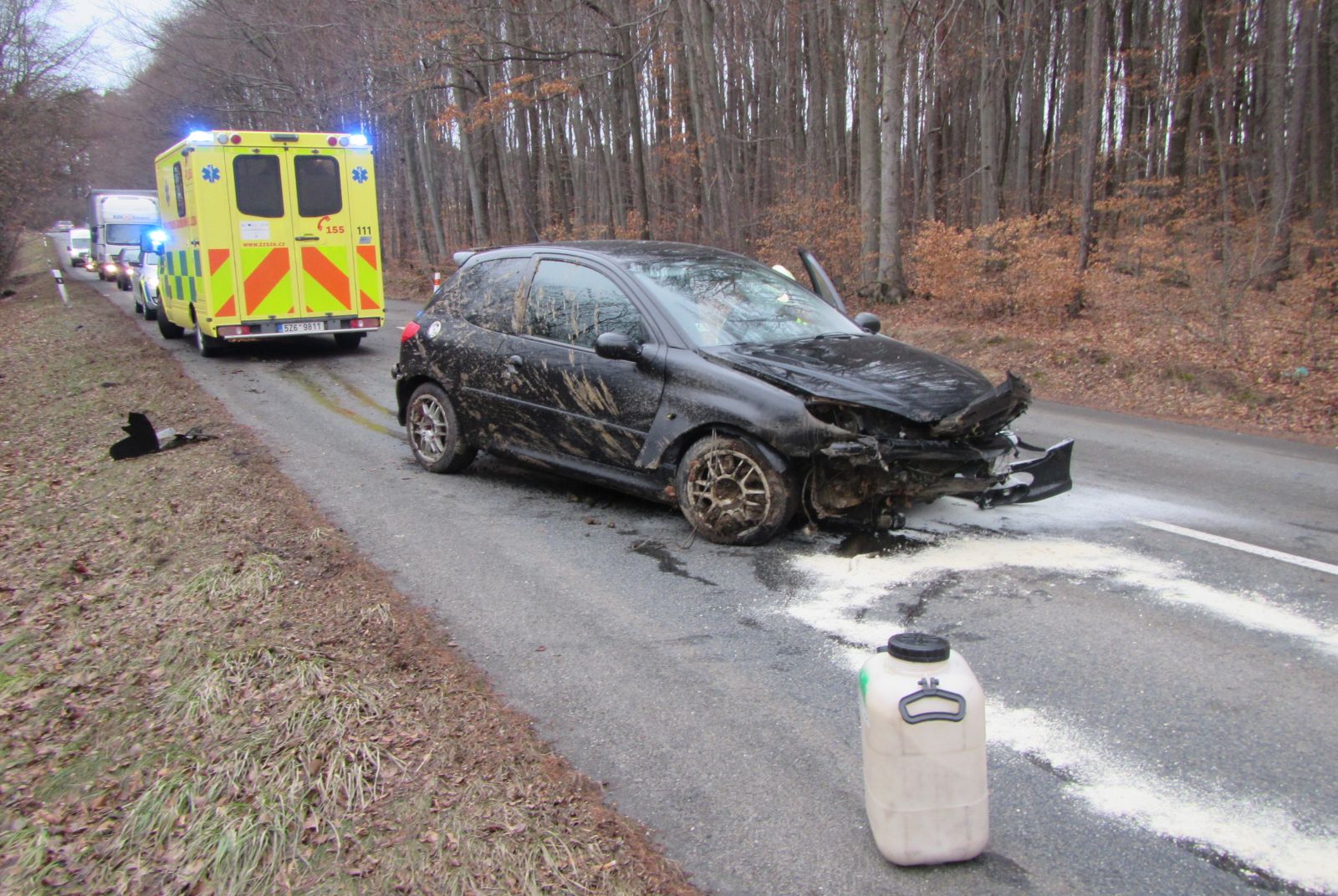 Řidič byl zkontrolován na místě nehody. Převoz do nemocnice nebyl nutný