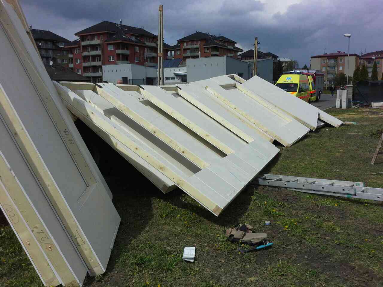 Padající panel montovaného domku zranil dělníka Prostějov, ulice Brodecká.