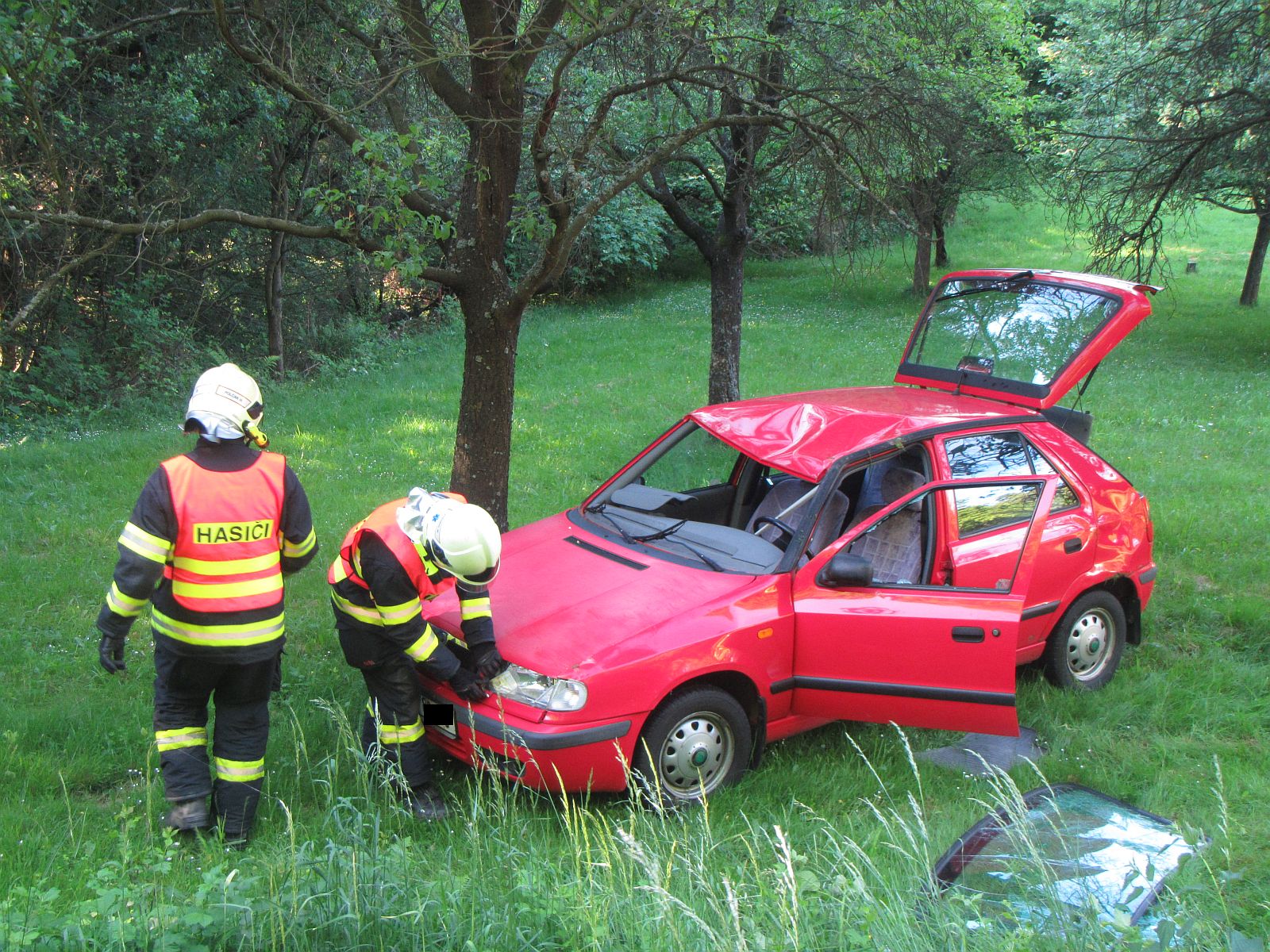 Osobní vozidlo skončilo po převrácení na louce mimo silnici