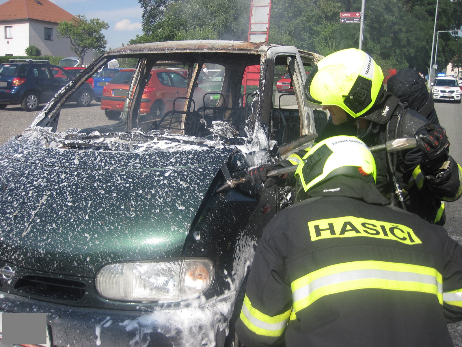 Požár osobního vozidla za jízdy. Řidič nebyl zraněn.