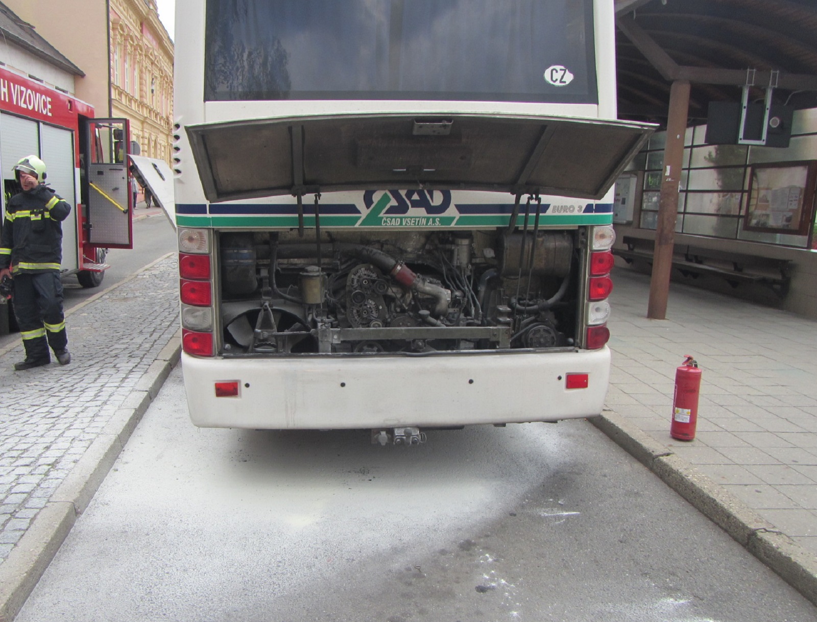 Na požár upozornila řidiče autobusu policejní hlídka. Aktualizace