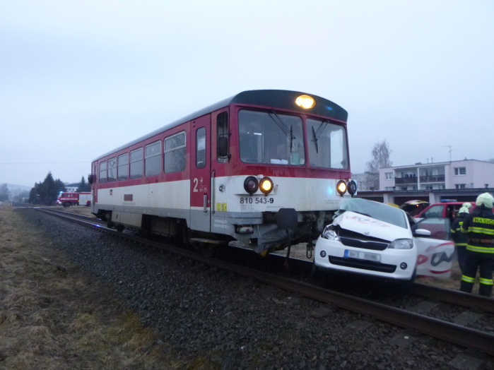 Po srážce vlaku s autem letěl pro zraněnou osobu vrtulník
