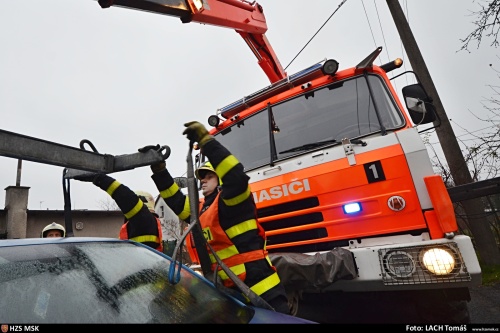 Vyprošťování neposlušné fabie z potoka v Ludgeřovicích