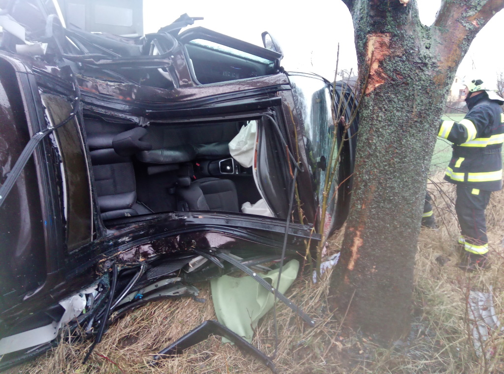 Po nárazu vozu do stromu museli hasiči jednu osobu vyprostit