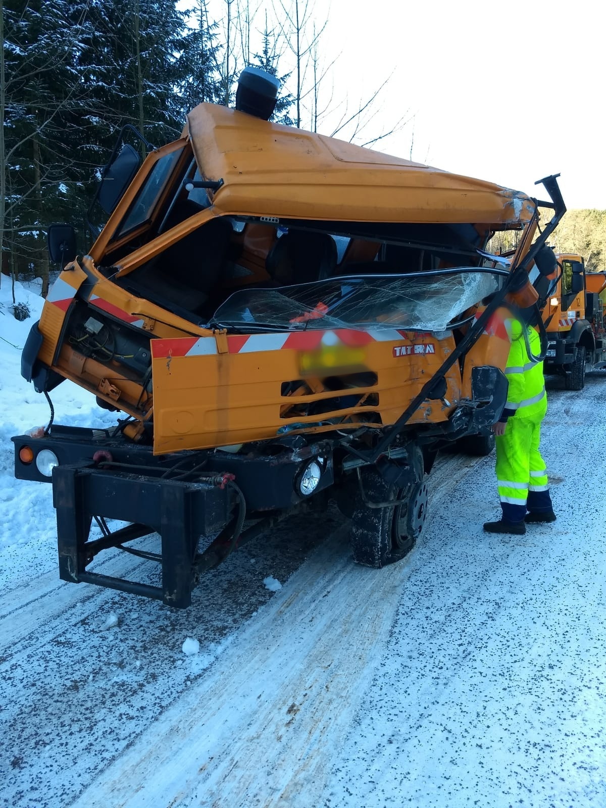 V Orlických horách se střetl autobus s vozidlem zimní údržby