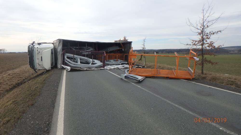 Havarovaný nákladní automobil zkomplikoval dopravu mezi Častolovicemi a Solnicí