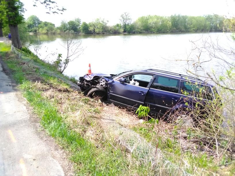 Po dopravní nehodě dvou aut skončilo jedno v rybníku