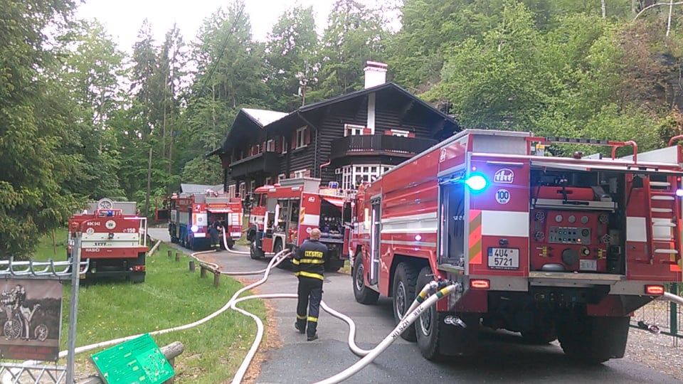 Požár dvou chat (penzionu s restaurací) a lesního porostu v Rynarticích - Na Tokání