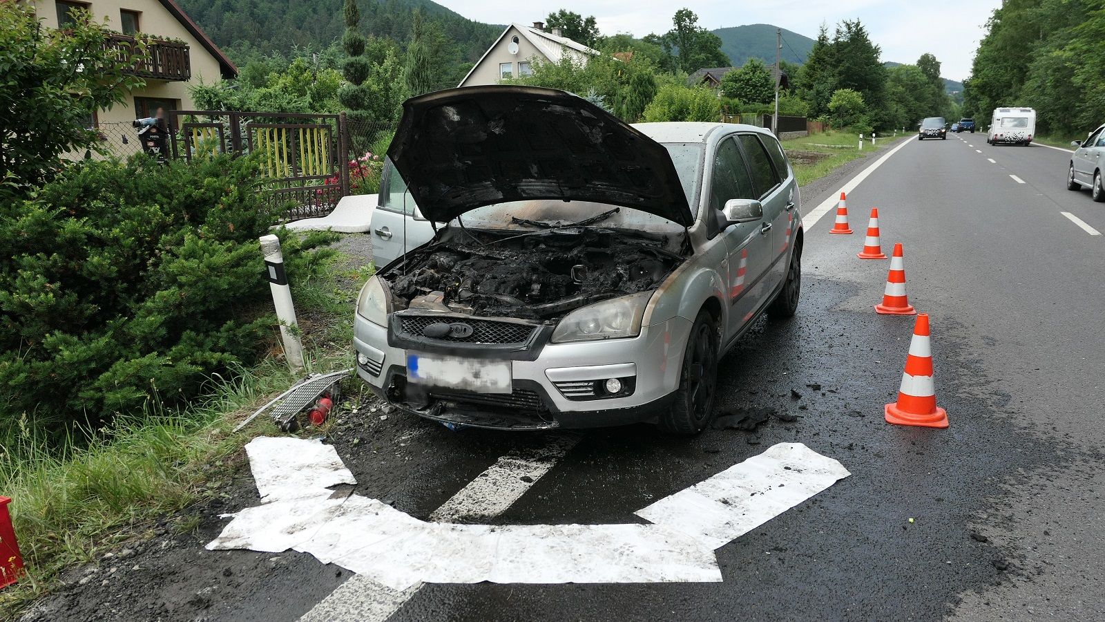 V Rožnově pod Radhoštěm začal hořet osobní automobil během jízdy.