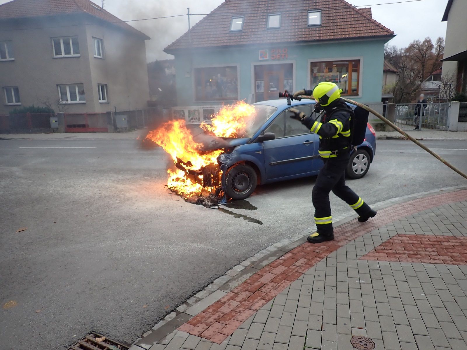 Požár osobního automobilu blokoval provoz na ulici 2. května ve Zlíně.