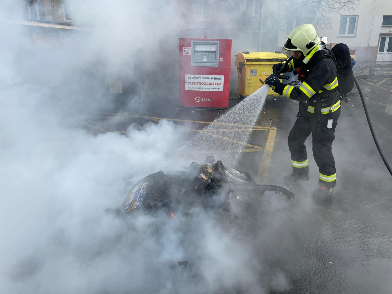 Požár kontejneru na komunální odpad v Ústí nad Labem