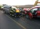 Dopravní nehoda dvou osobních aut a kamionu na D7 u Března