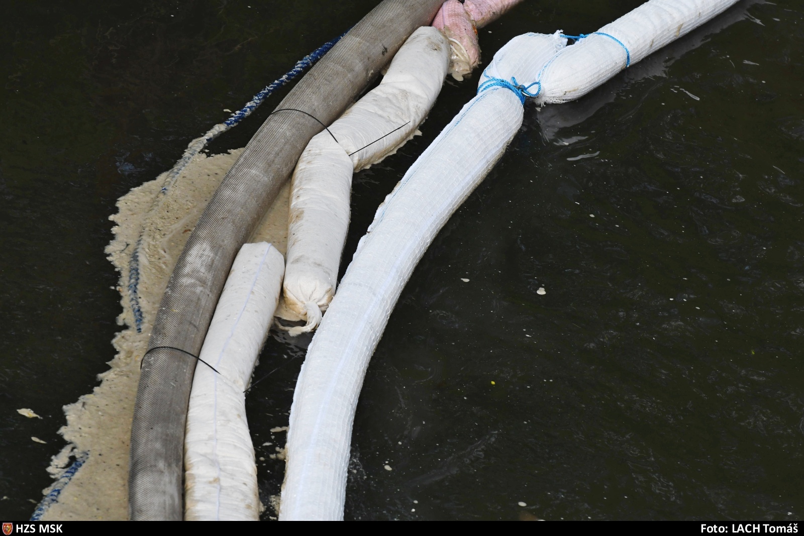Na hladinu Stružky v Rychvaldě hasiči pokládali norné stěny, bránili úniku neznámé látky