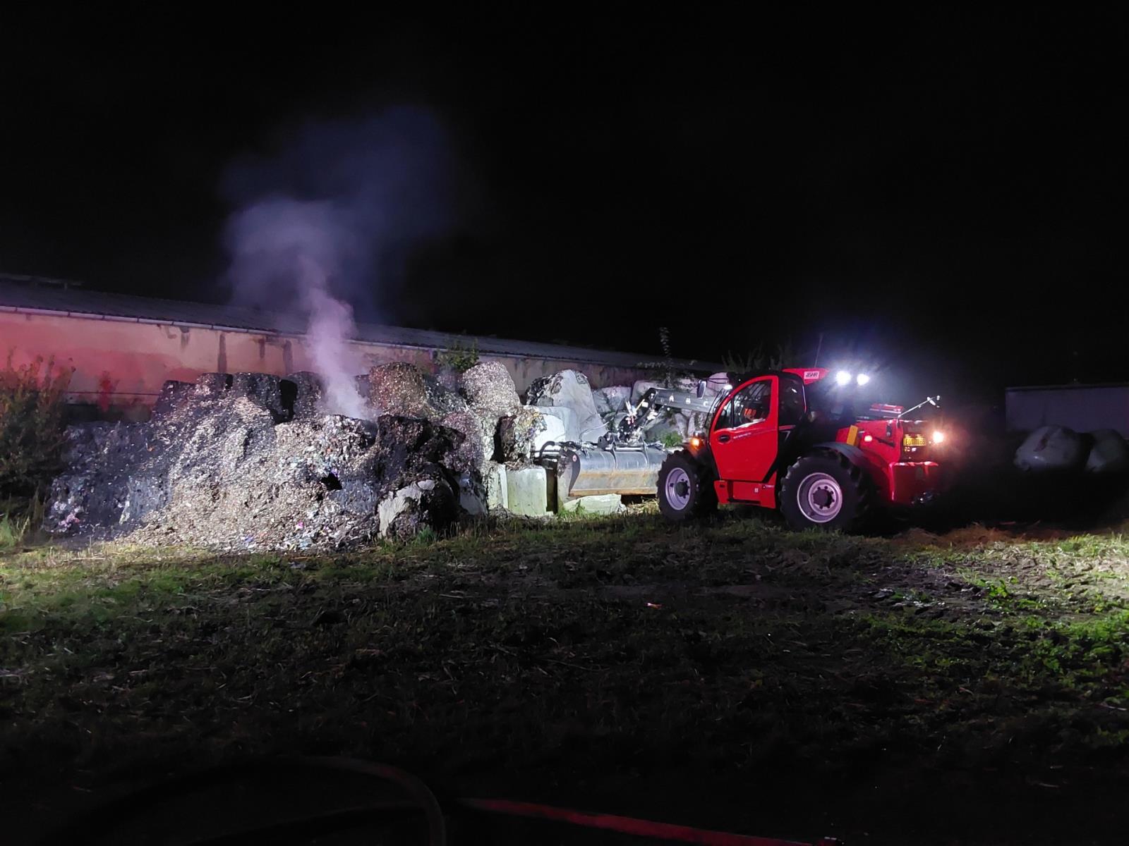 Požár v areálu zemědělského družstva Suchonice, Olomoucko - balíky plastového odpadu.