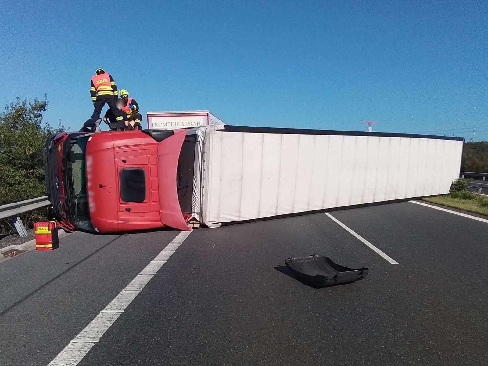 Dopravní nehoda kamionu na dálnici D8 u Keblic