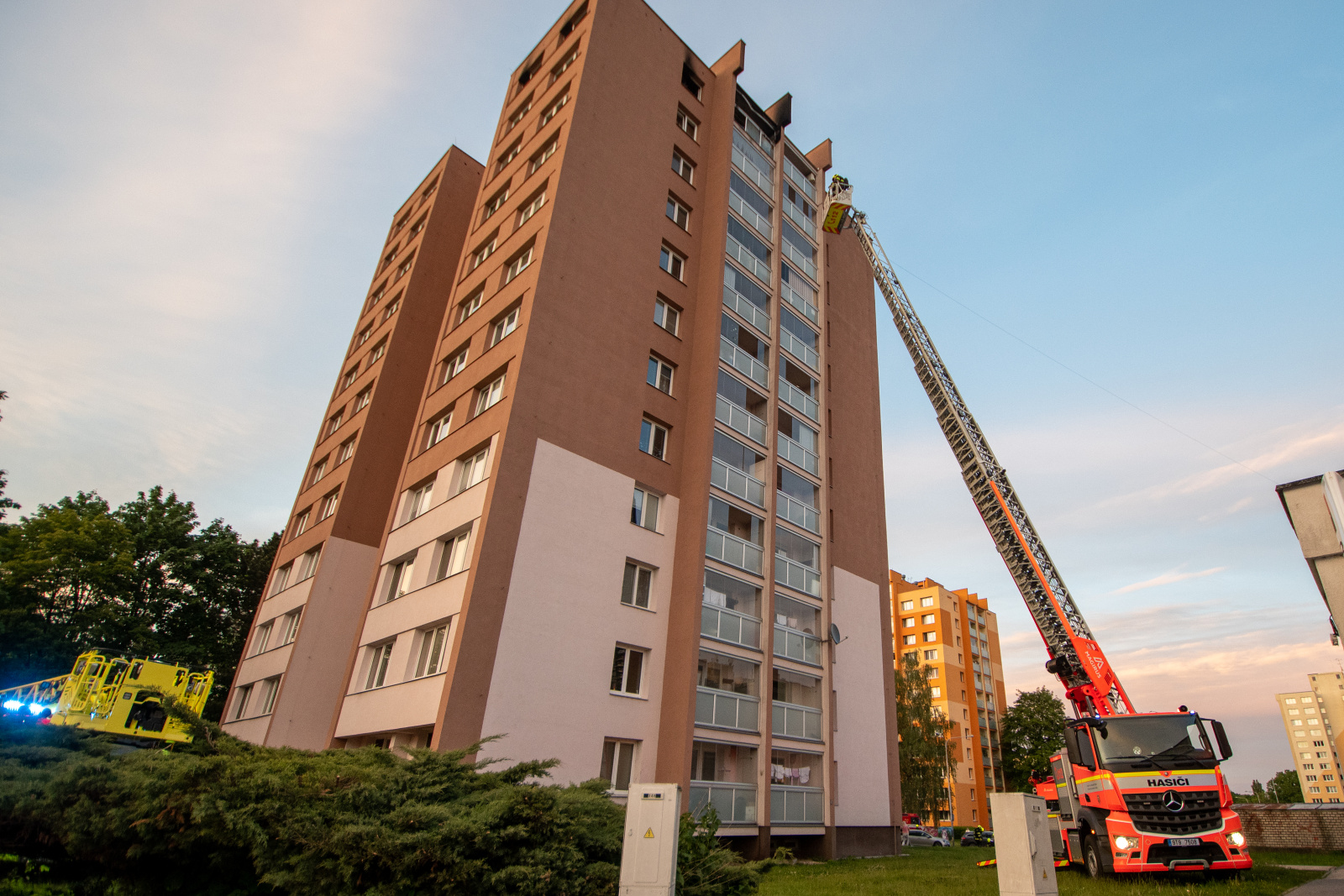 Při požáru v nejvyšším patře třináctipodlažní budovy bylo evakuováno 61 osob, 4 osoby byly zachráněny