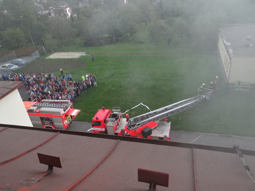 Simulovaný požár učebny a střechy v základní škole v Třinci
