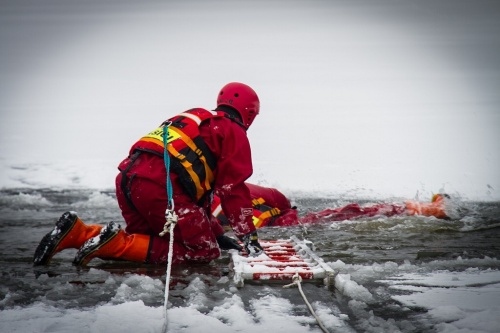 Zimní výcviky jednotek HZS MSK na ledě a ve vodě