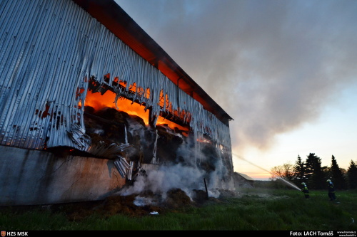 V Petřvaldíku hoří velkokapacitní seník, škoda 3 miliony korun